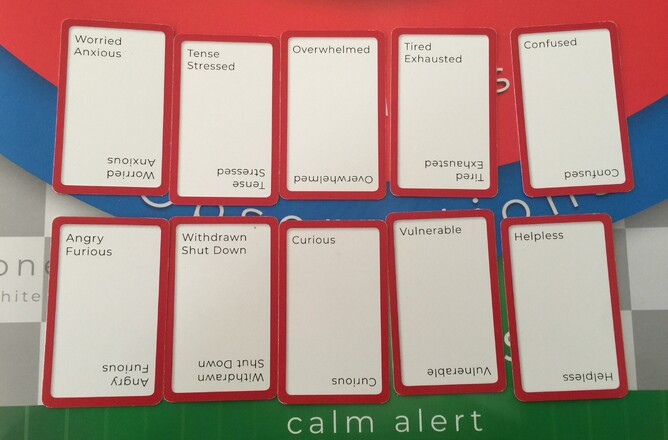 In the early hours of the morning after a sleepless night, Anne got out her No-Fault Zone® Game mat and cards. She shuffled through the Feelings cards, choosing ones that resonated with her. This is what she picked: